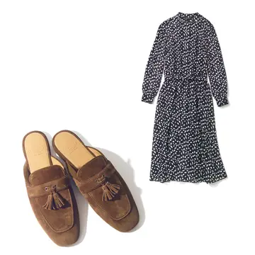 どんなシーンも心強い「エンポリオ アルマーニ」のワンピース&ハンサムな「チャーチ」のスエードミュールで夏スタイルを楽しむ! -