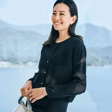 シアーニットカーディガンでエレガントな雰囲気に!上品な透け感で冬の装いに軽さをプラス -