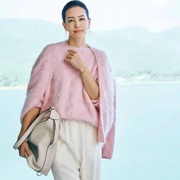 リュクスに着こなす「シャギーニット」ライトピンクであたたかみのあるコーディネートに! -