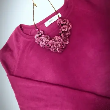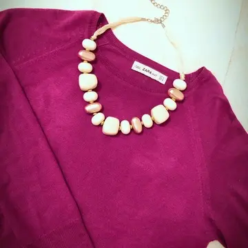 シンプルなデザインのニットは、アクセサリーで雰囲気も変えることができます。
