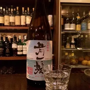 青一髪という名の麦焼酎をロックで注文したのですが、なかなかいい感じでしたよ~