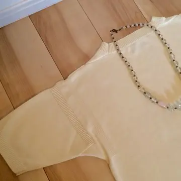 エクラプレミアム4月号に掲載されている商品、Le Tricoteurのコットンニット(オフホワイト)のトライアルをお願いされたので、コーディネートしてみました。