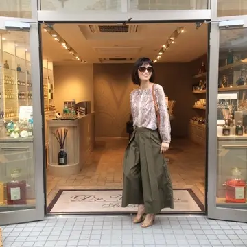 そんな今回のコーディネートは、バナナリパブリックのパイソン柄フラウスにZARAのカーキワイドパンツ。