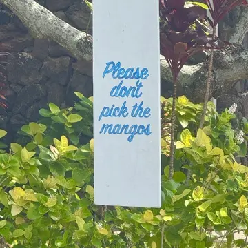 ラニカイピルボックスまではハワイの高級住宅地カエレプル・ドライブを上がっていきます。庭先に「マンゴをとらないで!」という看板(笑)ハワイらしい光景です。