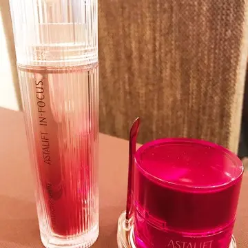 そしてこれが新製品の「インフォーカス」と「ナイトチャージクリーム」。どちらも富士フィルムのナノテクノロジーを生かしたエイジングケア用化粧品で、美容液はジェリーのような、そしてクリームはこっくりとした濃厚リッチなテクスチャーで、肌の再生とハリ感をもたらすまさに私たちエクラ世代にとっての救世主。実際に肌にとると、みるみるうちに肌がもっちりしっとりに。時間が経っても乾燥せずその場ですごさを実感できました。絶対に使いたい!
