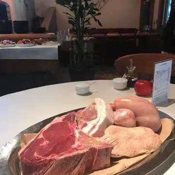 ランチタイムにはお肉をセレクトして、それが焼けるまでの間ズラーッと並んだ前菜をビュッフェ形式で。種類も多くてしかも自家農園の無農薬野菜や産地直送の魚介類を使った新鮮なメニューはどれも間違いない美味しさ。そしてこのボリューム!食いしん坊で欲張りさんにはオススメです(笑)。