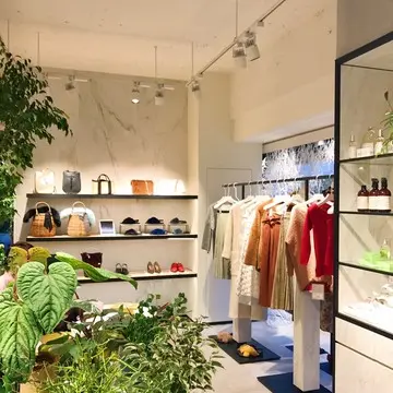 2017年にオープンしたばかりの青山の路面店は白を基調にした爽やかでスタイリッシュな雰囲気。オリジナル以外にもセレクトされたバッグやシューズ、フレグランスやグリーンまであってとても心地よく、ゆったりとお買い物ができます。ターゲットとしては少し若めですが、エッジィなのに上品なデザイン、お値段もこなれていておすすめです♪