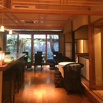 落ち着いた店内。町家なので奥にお庭が見えます。