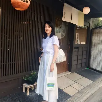 この日はebure(エブール)の白ロングフレアに合わせて。シャツはユニクロのクロップドクルーネックT。バッグは白のJ&M DAVIDSONのカーニバルでオールホワイトにしました。(最初はネイビーT合わせのつもりだったけどどうしても着る気になれなかった(汗))