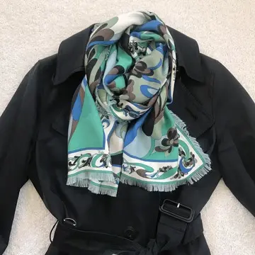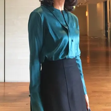 この日はキレイ色のグリーンのシルクブラウスで。そんな時は色がアクセントになって巻き物いらずでこれまた便利(笑)。