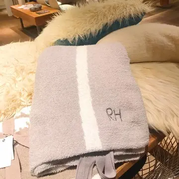BAREFOOT DREAMS(ベアフットドリームス)のブランケット。ふわっふわの手触りで思わずスリスリしたくなります。これはロンハーマン別注で、RHのロゴ入り。ラッピングも可愛い。喜んでくれるといいな。
