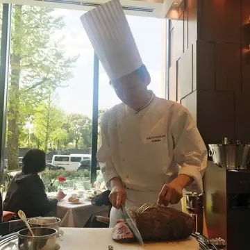 そしてそして、ロッシニといえばローストビーフ!テーブルにシェフが来てサーブしてくれます。量はたっぷり200g。柔らかくてジューシーでとても美味♡メインがこの量なので、大食いの私もお腹いっぱい、大満足でした〜。少食の女子はちょっと無理かも(笑)。