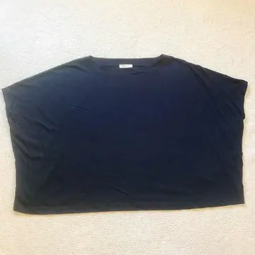 ハンガーにかかっているとわからなかったのですが、広げてみるとこんな形。かなりのゆったりサイズ。でも生地がコットンなのにシルクのような滑らかさと光沢があって、身体に優しくフィットして落ち感がとても綺麗なんです。ボートネックなのでデコルテもスッキリ。