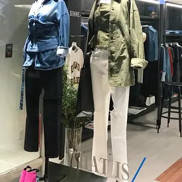 由夏さんのデニムへのこだわりはとても強く、SINMEの代表的なアイテムでもある「リジットデニム」(写真右端)いわゆる生デニムの「育て方」までレクチャー。リジットデニムは美脚デニムとしても有名です。
