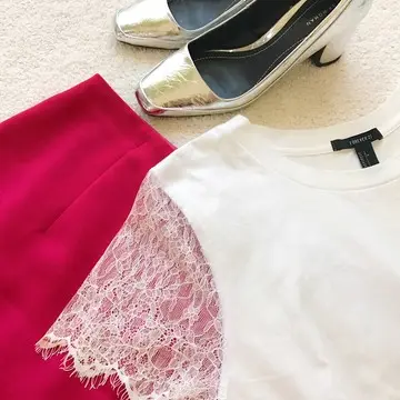 Tシャツは姪っ子に聞いて初めて行ったフォーエバー21で。袖のレースも華奢な作りで良いなと思って値札を見たらあまりの安さにビックリ!…もちろん即買い。