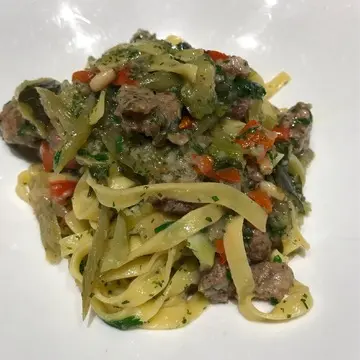 桃の季節になると、その時々にお店に入る桃を使って、とっても美味しいパスタが頂けるのです。