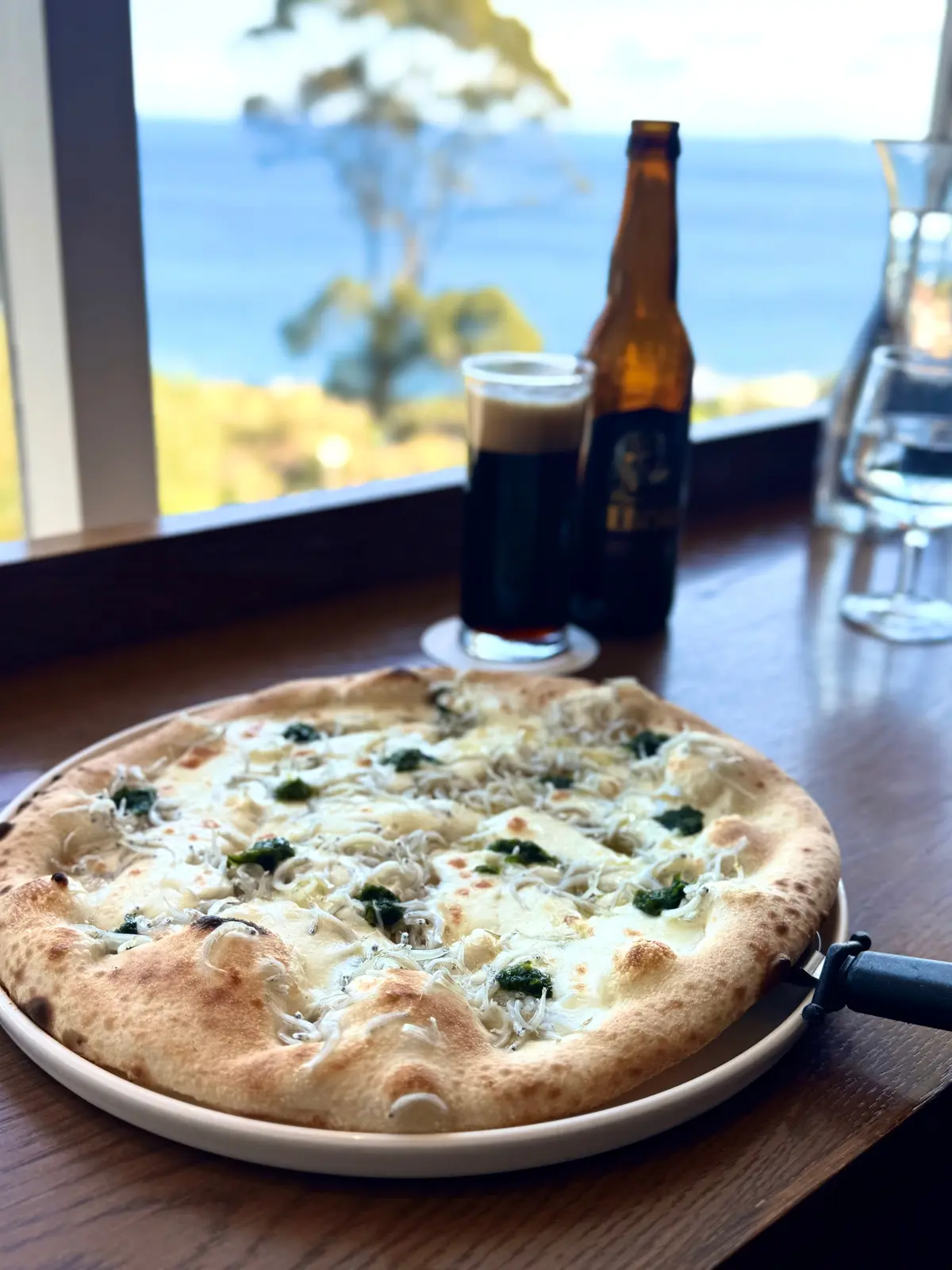 ピザはモチモチの生地に新鮮なシラスと青のりの風味がたまらない!爽やかなレモンの香りのパスタも絶品でした!