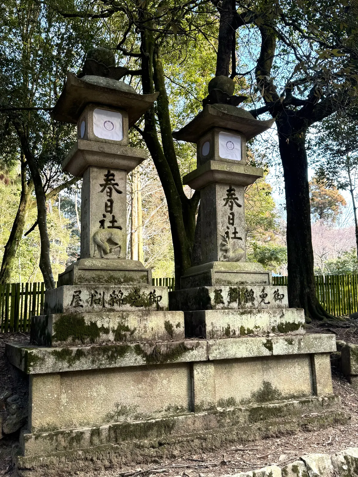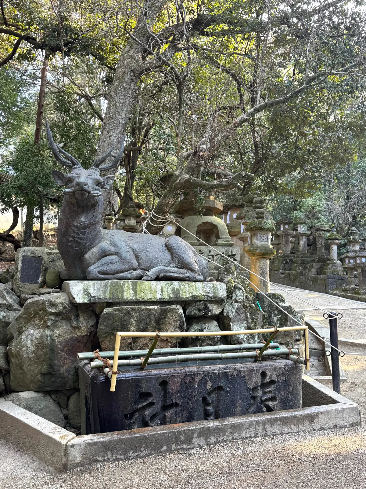 武甕槌命(たけみかづちのみこと)が白鹿に乗って春日大社を作ったという燈籠?