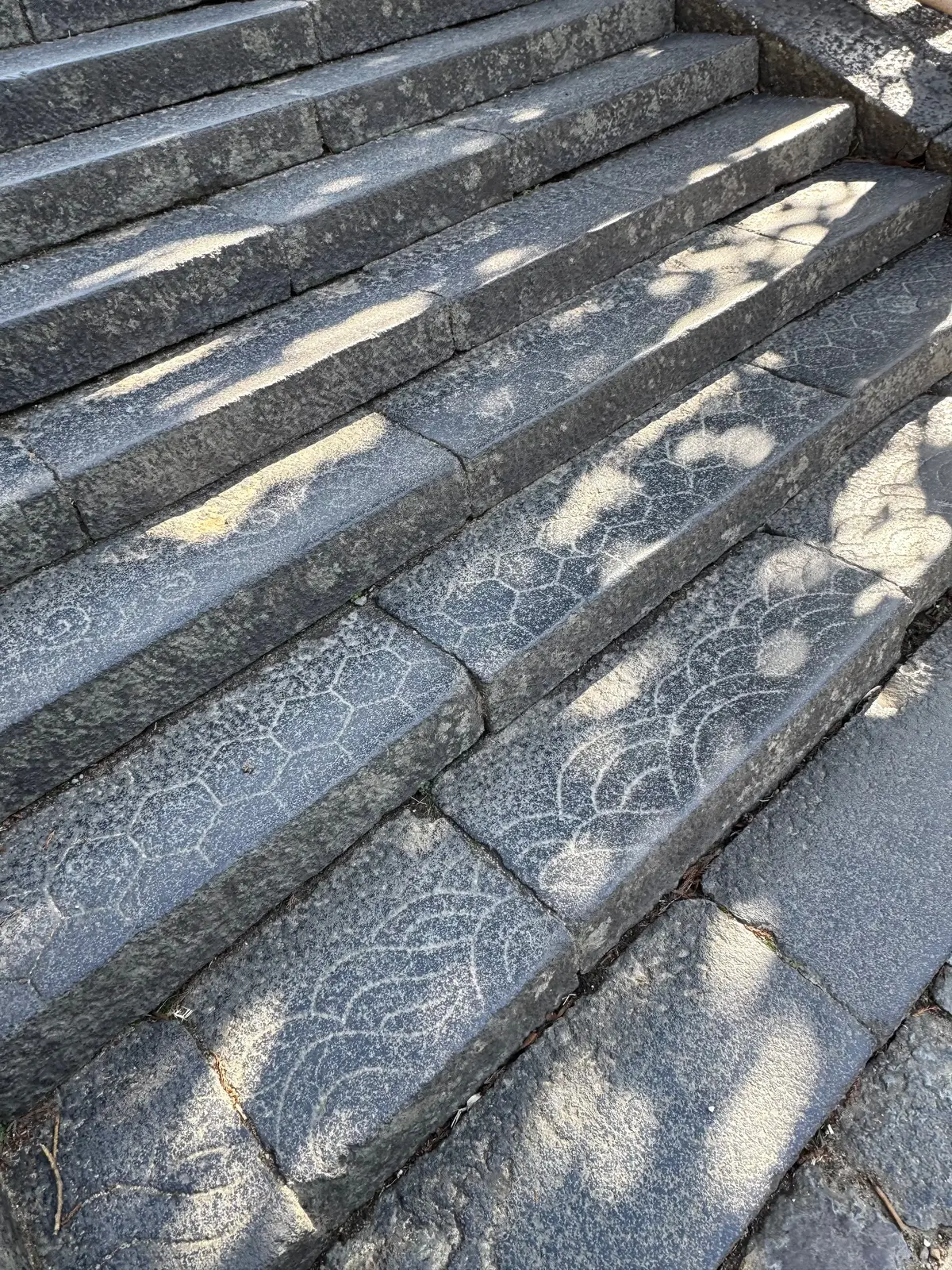 二月堂へと上がる石段には流水・亀甲・青海波模様が刻まれています