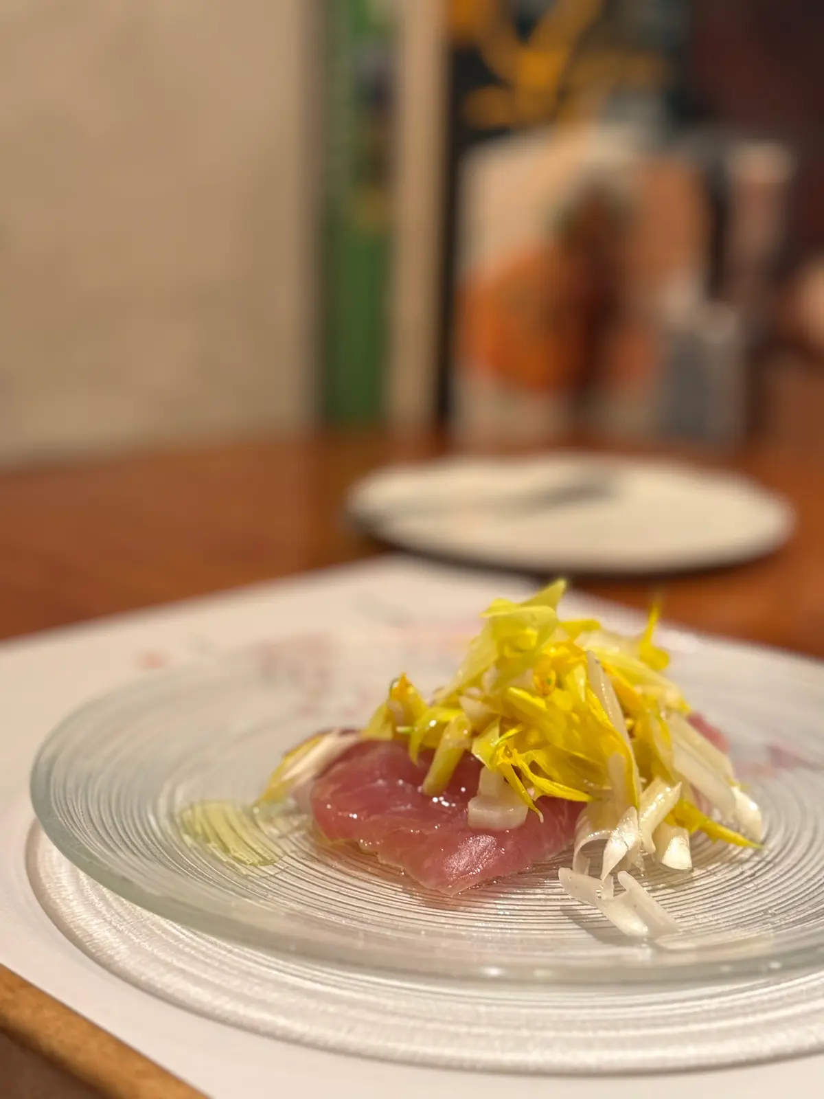 (友人)五島列島 鮮魚のカルパッチョ 菊とうるいのサラダ