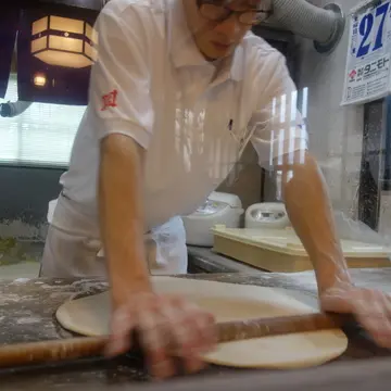 職人さんが生地を足裏で踏み、コシをを出しています。