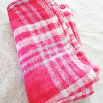 こちらで購入したのは肌触りのよいガーゼのハンカチ。可愛いピンクのチェックに惹かれました。