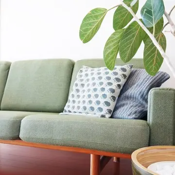 我が家のリビングは南側に大きな窓があります。そこからの光と風が心地よく、日中はついウトウトしてしまうことも(笑)。そんな何気ない日常を楽しむ空間を、北欧家具やグリーンがあたたかな雰囲気にしてくれます。