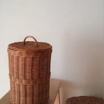 脱衣所で活躍するかご。タオルや着替えを入れます。
