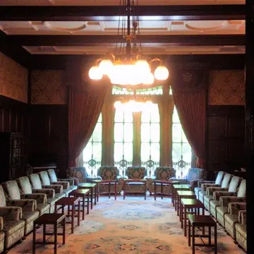 大臣室(総理大臣を囲んで大臣たちが座っている様子をテレビでよくみます)