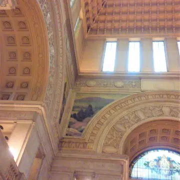 中央広間、三角屋根の下あたり(伊藤博文、板垣退助、大隈重信の銅像が三方に立っています)