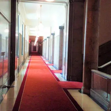 赤じゅうたん(議事堂内には、階段含め約4キロメートルにわたって敷かれているそう)