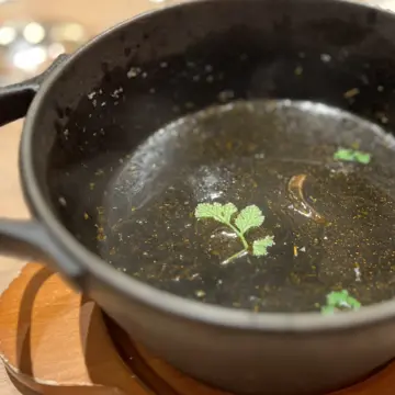 渋谷でこのクオリティは、エクラ世代もオッケーなのでは♡ メインは3人とも「南部鉄器のアロス・カルドッソ」(イカ墨のスペイン風おじや)チョイス。南部鉄器で供されるアツアツの「おじや」美味しかったです!