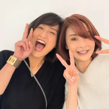 同じ日に撮影だった、豊田真由美ちゃんとは得意のダブルピースで。緊張から解き放たれたふたりです 笑