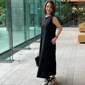 丸の内での集合でしたが、雨予報もあってリラクシーなブラックのワンピースにスニーカーコーデにしました。