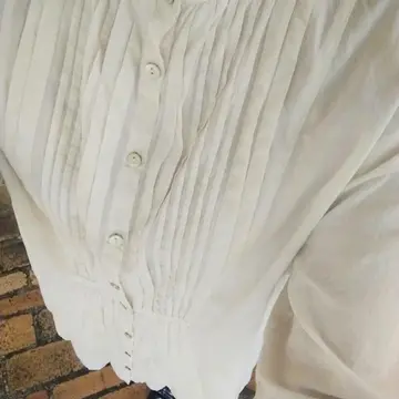 何年も前に買ったノーブランドのシャツですが、幾重にもかさなったピンタックと、薄手のオフホワイトが軽くて、何年経っても飽きずに着ています。