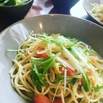 蟹と水菜のペペロンチーノ