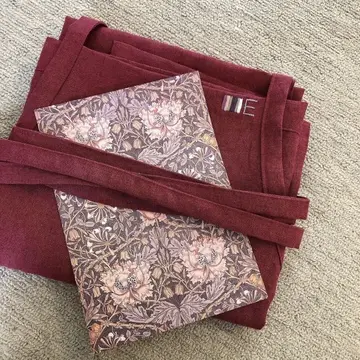 ちょうど同じイニシャルEの料理家さんからオーダーいただいたこっくり赤のリネンエプロン。