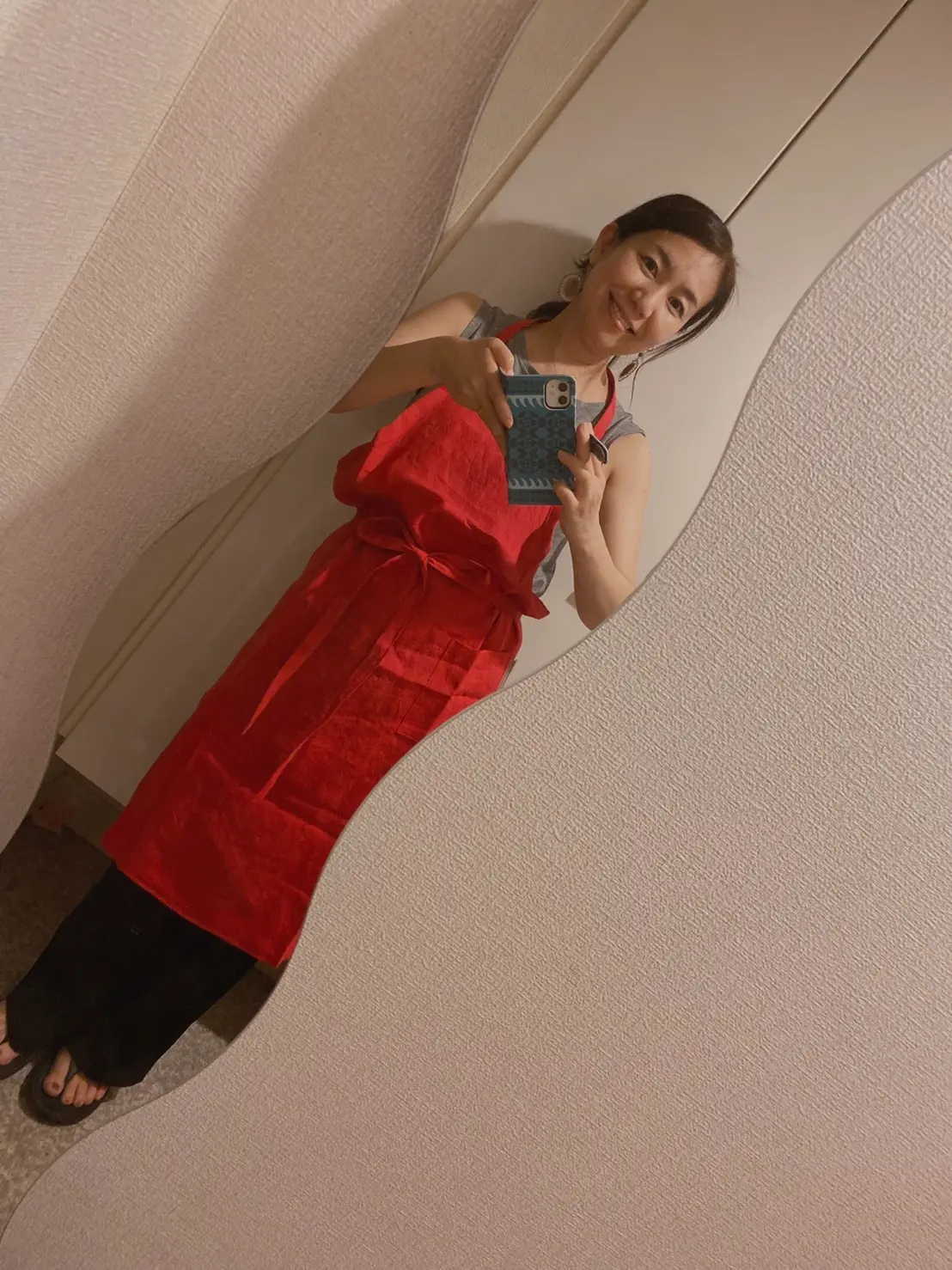 赤やブラウンなど、今はこっくり色のエプロンのリクエストが多いです。