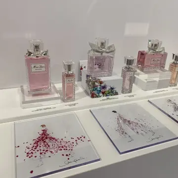 キラキラ眩いショールーム、デジタルコンテンツを駆使して、ミスディオールを体験できるエリア、新感覚で撮影を体験できるエリア、カフェコーナーもあります。