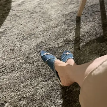 デニムサンダルのかかとはよく見るとキラキラビジュー素材が。
