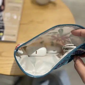 スマホ関係の充電器やカードと名刺入れなど、小物がすっぽり収まります。