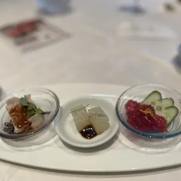 ・ 海の幸、山の恵みの三種前菜盛り合わせ