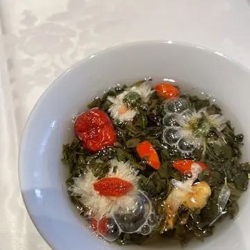 食事の合間に、国家資格を持つ「茶芸師」によるアクロバティックなパフォーマンスで、“八宝茶”と呼ばれる中国茶おを頂けます。