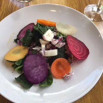 地元野菜たっぷりの前菜サラダ、一つ一つ甘みがあり美味しい