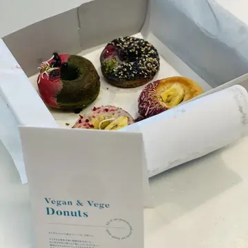 こちらはテイクアウトできる、ベジタリアン、ビーガンのドーナツ。しっとり柔らかく優しい味でプレゼントにもおすすめです。