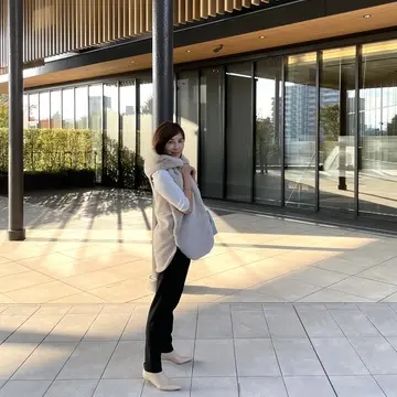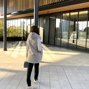 ファーのフードが首回りが温かく、カジュアル感もあるのでジレ初心者には使いやすい。