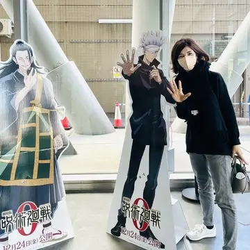 鬼滅の刃は家族でハマりましたが、呪術廻戦は私は全くアニメを見ていなかったのですが、こちらは本作アニメの前段階のお話なので、呪術廻戦初心者でも楽しめます!格闘シーンも最高にかっこよく、King Gnuの曲もカッコよく映画館で見る価値ありです。五条さんと同じポーズで記念撮影。