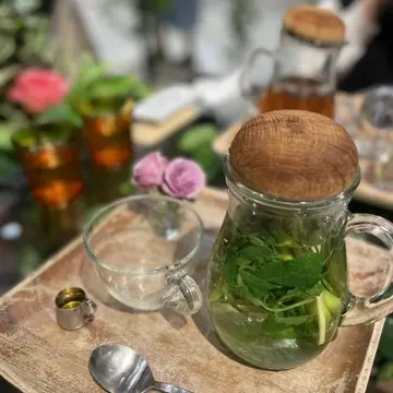 TEAHOUSEへ。 お花と緑に囲まれ頂くハーブティーは最高でした。吉祥寺以外に、青山と赤坂にもあります。