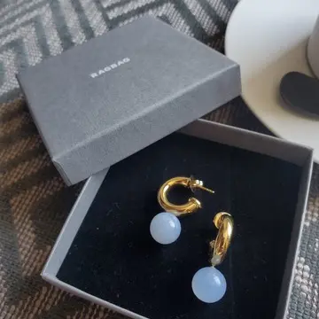 ストールでネックレスが見えなくなってしまう分、ピアスで顔回りの華やかさをプラスしています。デンマーク発ジュエリーブランド RAGBAG STUDIO のものは、天然石ブルーカルセドニーの水色がお気に入りです。