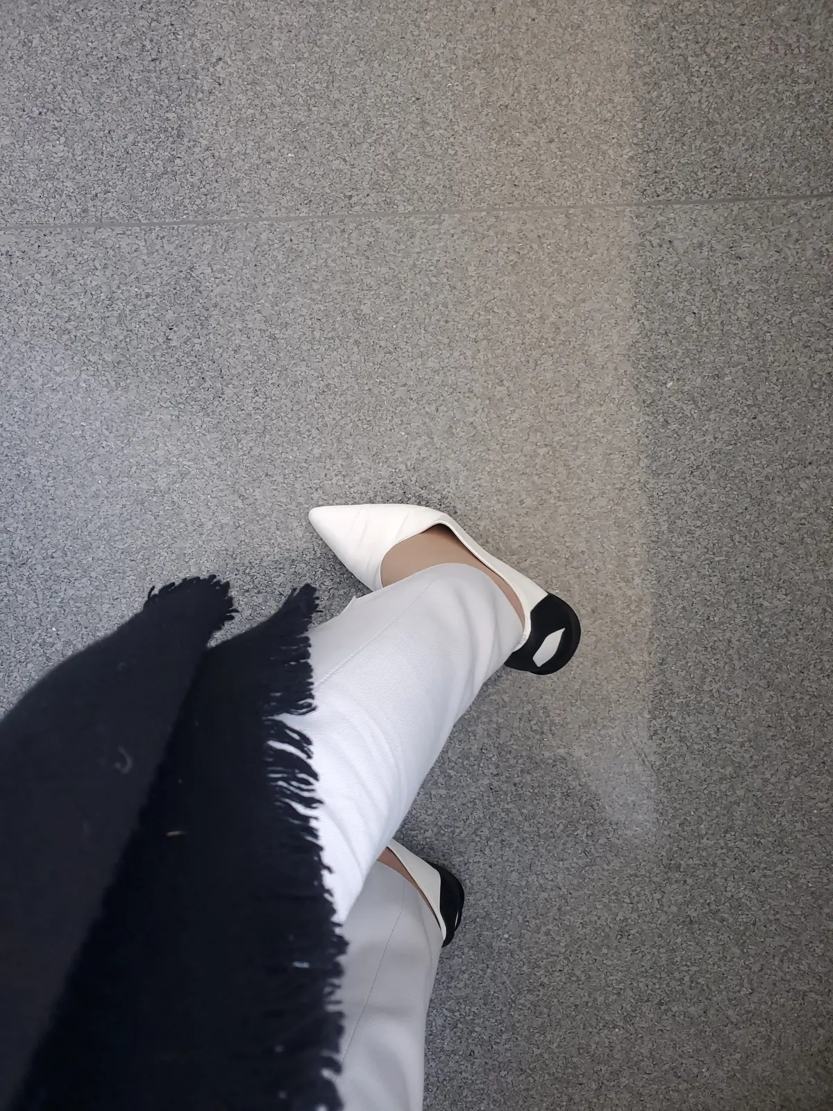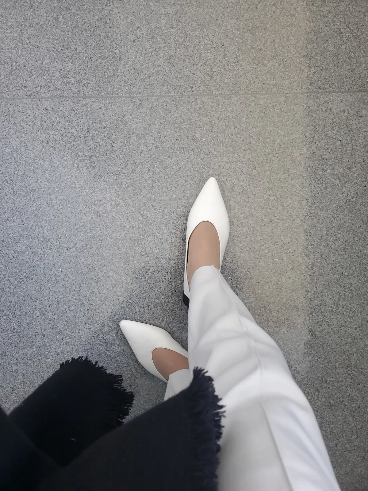フラットシューズでもクラシックなデザインなので、オフィスにも活躍中。